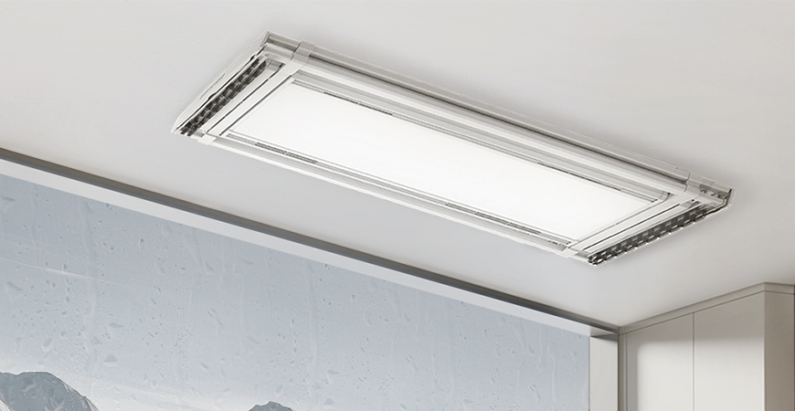 嵌入式隱藏安裝,晾桿回收宛如貼頂陽臺燈,減少頂部壓迫感,不壓層高,隱形晾曬更美觀。