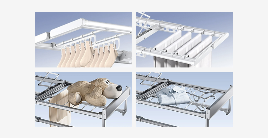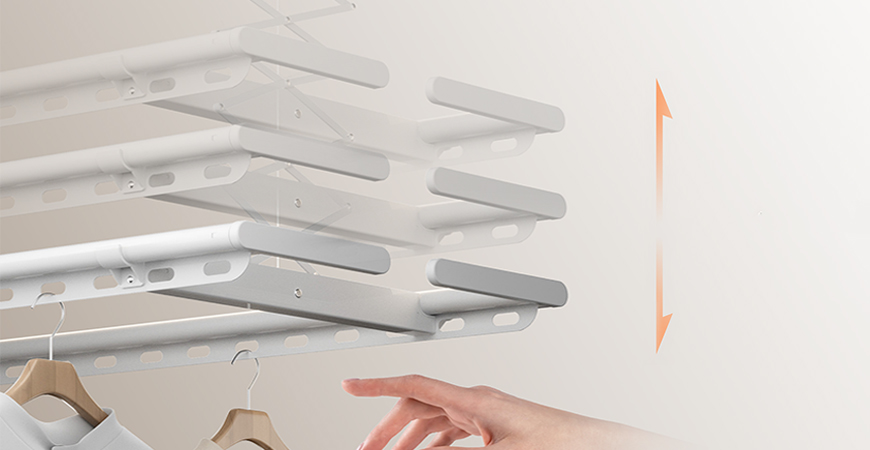 晾衣架下降至底部,輕抬托架即可觸發上升,方便省事;且晾衣架上升/下降過程中遇到障礙物會自動回升,保護使用者安全。