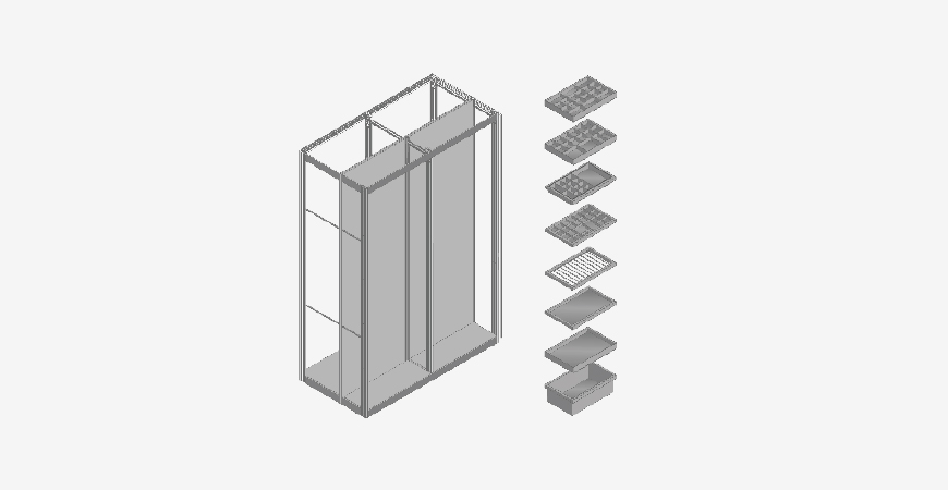 柜體通過前后三組鋁合金立柱支撐,與地面、墻面、頂面連接,穩定牢固。