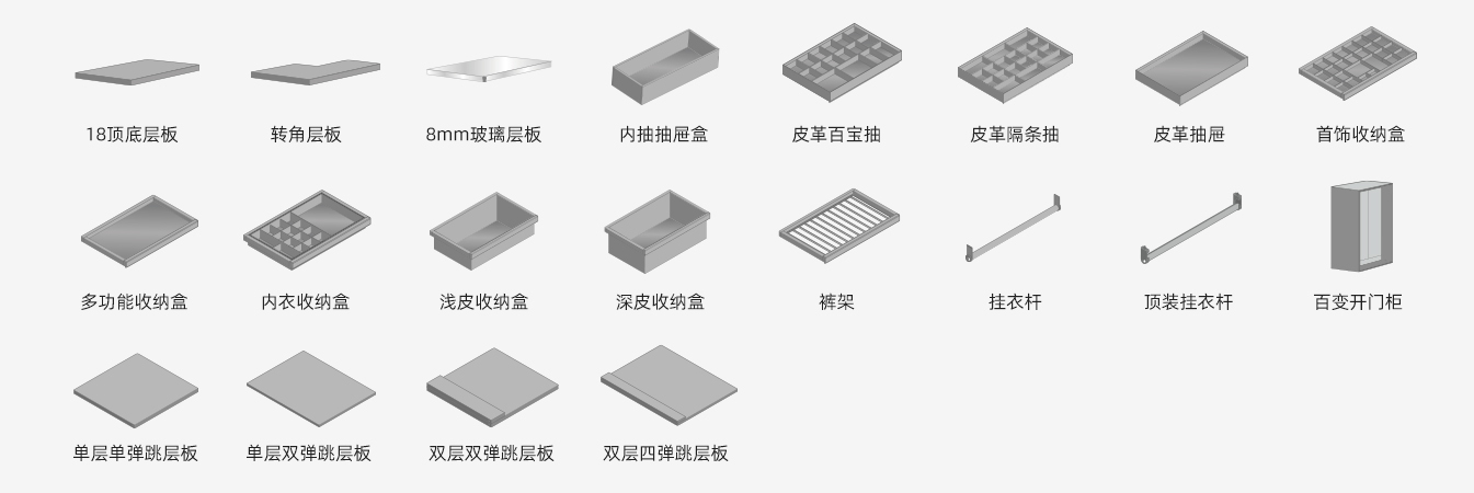 支持衣柜、書柜、酒柜、餐邊柜、展示柜等多種功能切換,滿足不同生活場景。